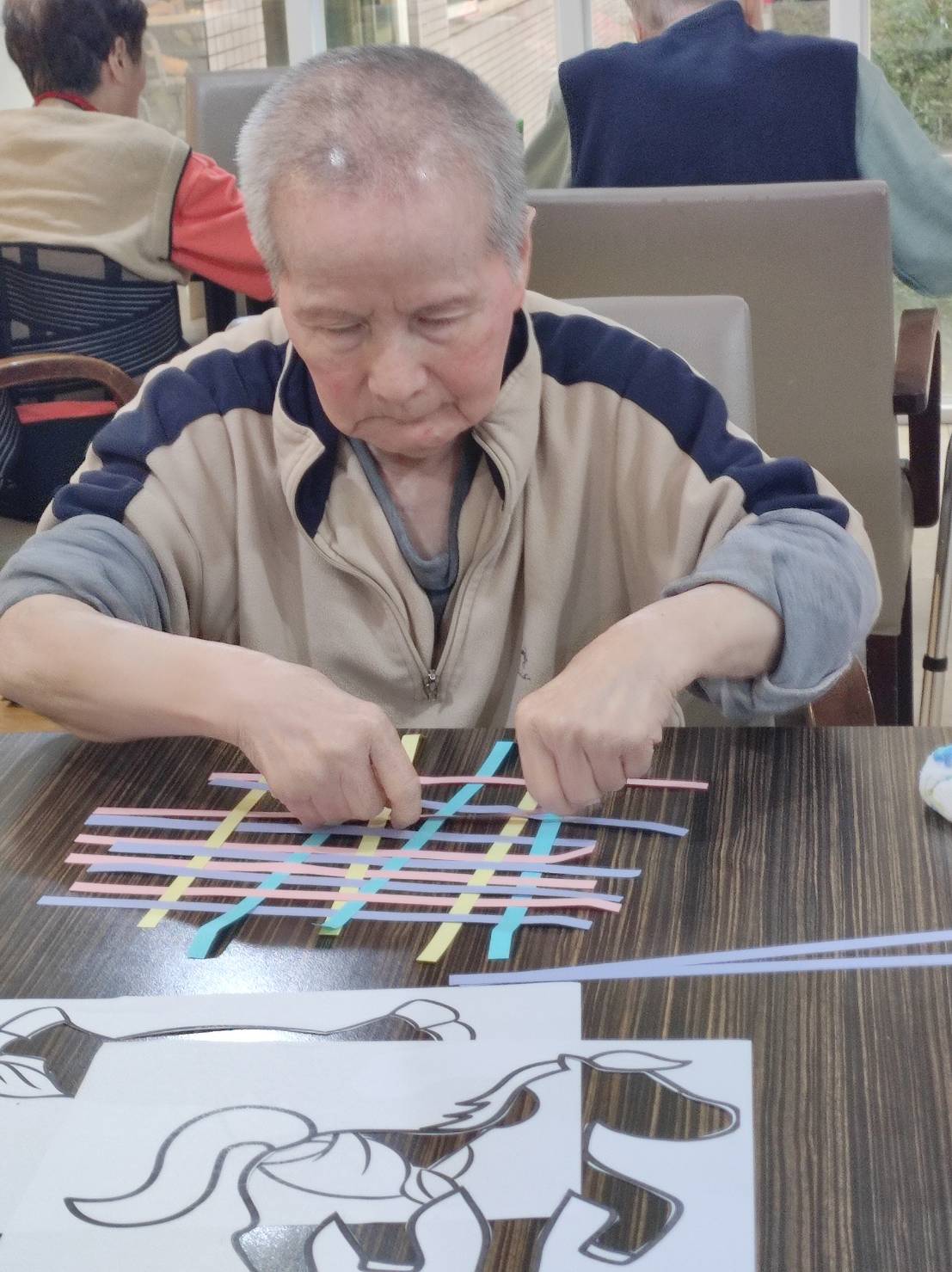 這是一場展現巧思的集體創作:指尖的編織力:長輩們運用巧手,將一條條紙帶交錯編織,賦予了馬兒堅韌的形態。 繽紛的色彩力:另一群長輩則化身色彩大師,為每一匹馬點綴上絢麗的色彩。