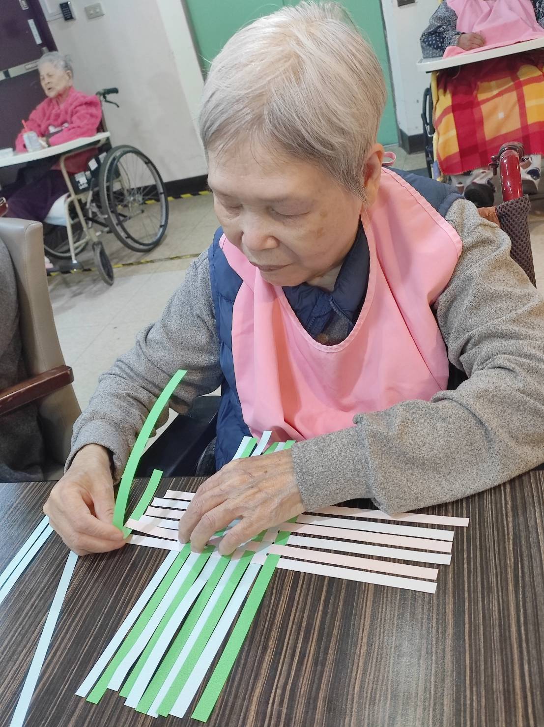 牆面換上了新裝,滿眼翠綠的底色象徵著生機蓬勃的春天! 隨著馬年的腳步近了,我們愛愛院的長輩們也在社工的引導下,展開了一場盛大的「樓層美化運動」。