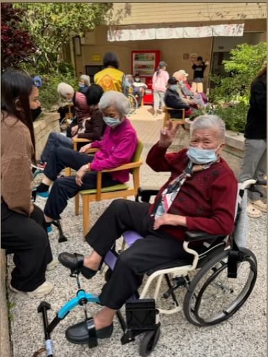 看著長輩們有的踩著腳踏器訓練腿力,有的伸展筋骨活絡身心,每個人在陽光灑落下的笑容,比花園裡的花朵還要燦爛。對長輩來說,最好的補品不是藥物,而是這份溫暖的陽光與陪伴。