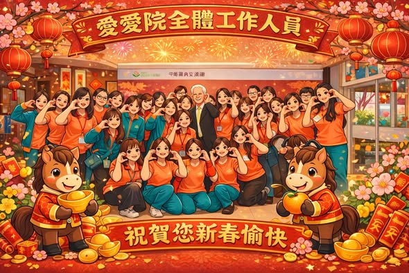 新春將至,謹祝福所有愛愛院、東明住宿長照、愛力勇日照、社區整合中心所有團隊、長輩與家屬。闔家平安、身體健康、事事如意。願新的一年福氣滿滿、喜樂常在,讓愛與希望在愛愛院持續綻放