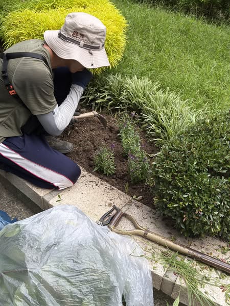 圖中可以看到我們正在種植新花卉、修剪草坪,讓花園煥然一新。