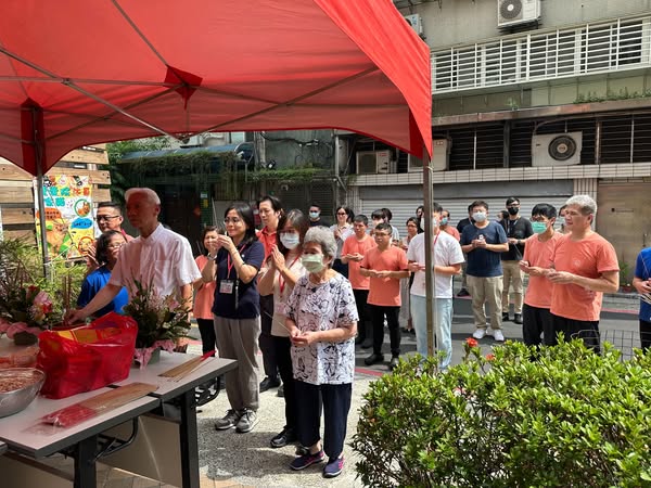 愛愛院在院裡舉行 中元普渡,由工作人員和長輩們一起上香祈福