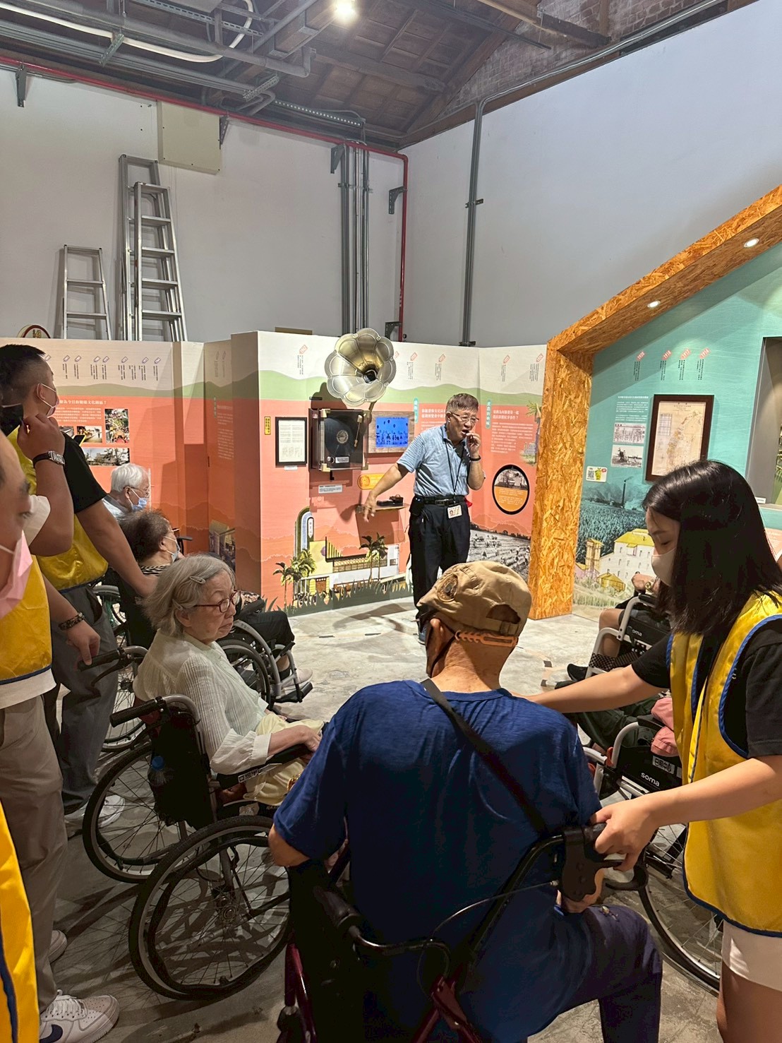 到了文化園區,長者們看到了火車頭,現場還種有許多甘蔗,有長者觸碰後驚呼:「原來甘蔗是長這樣啊!」現場導覽人員介紹,糖廍里以前是製糖的重鎮,長者們聽完後點點頭露出原來如此的表情。由於長者們行動不便久坐輪椅,心情難免受到影響,此時陪伴他們外出,適時地讓他們轉換空間,也能讓他們轉換心情!