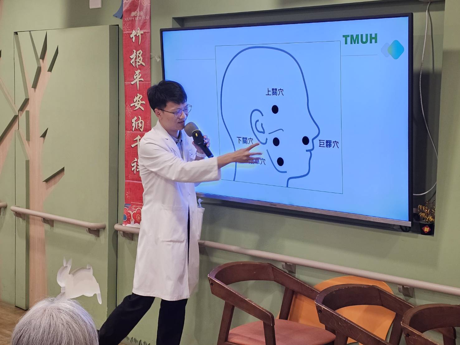 透過專業講解與示範,讓長輩們了解如何透過簡單的穴位按壓,促進吞嚥功能、減緩不適。