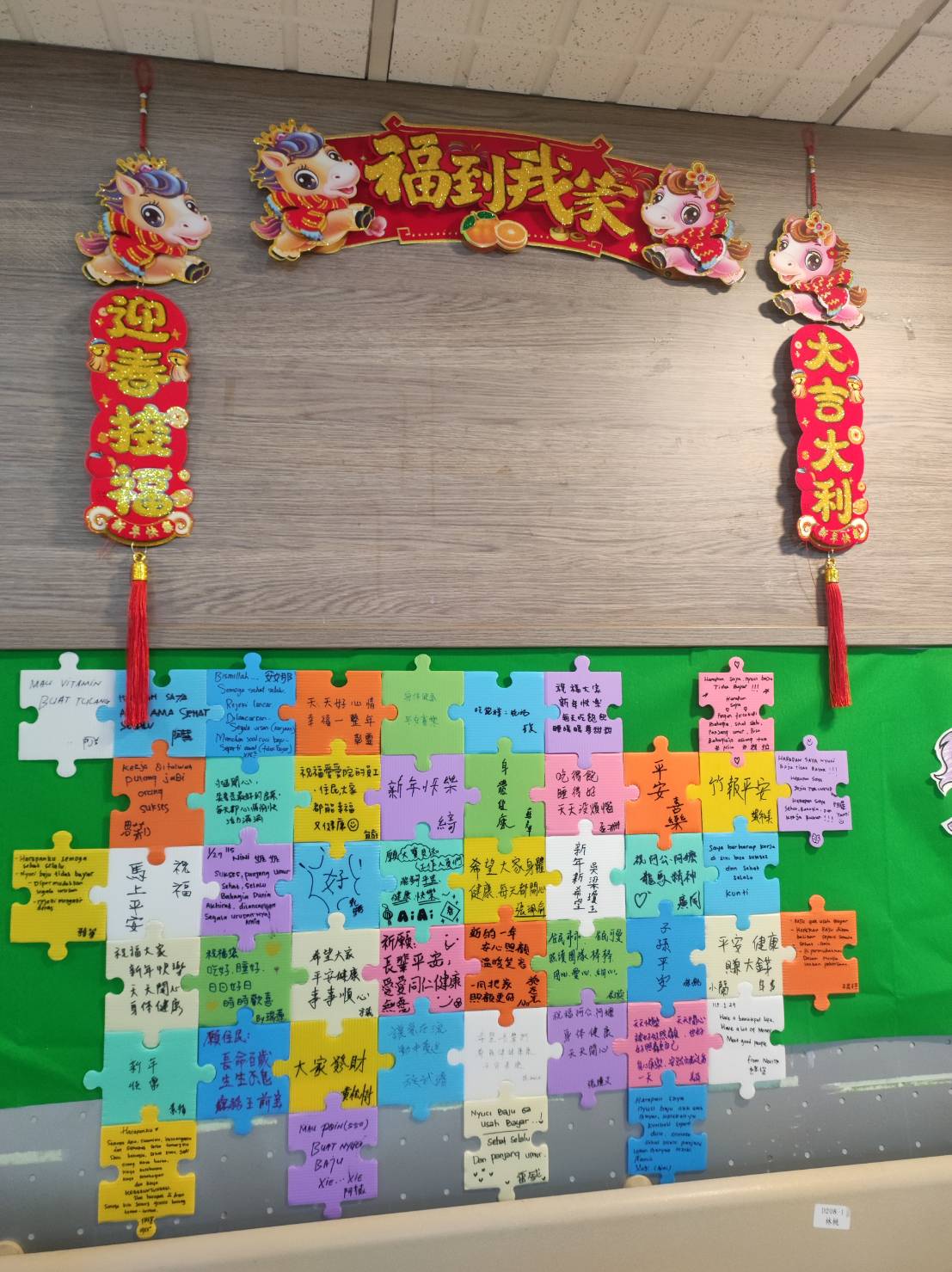 更溫暖的是,我們在牆的一角特別留下了「許願空間」。 社工邀請了工作人員與長輩們,一筆一劃寫下對新年的祝福與期盼。每一張祝福卡就像一片拼圖,拼湊出我們這個大家庭最真誠的心願。❤️