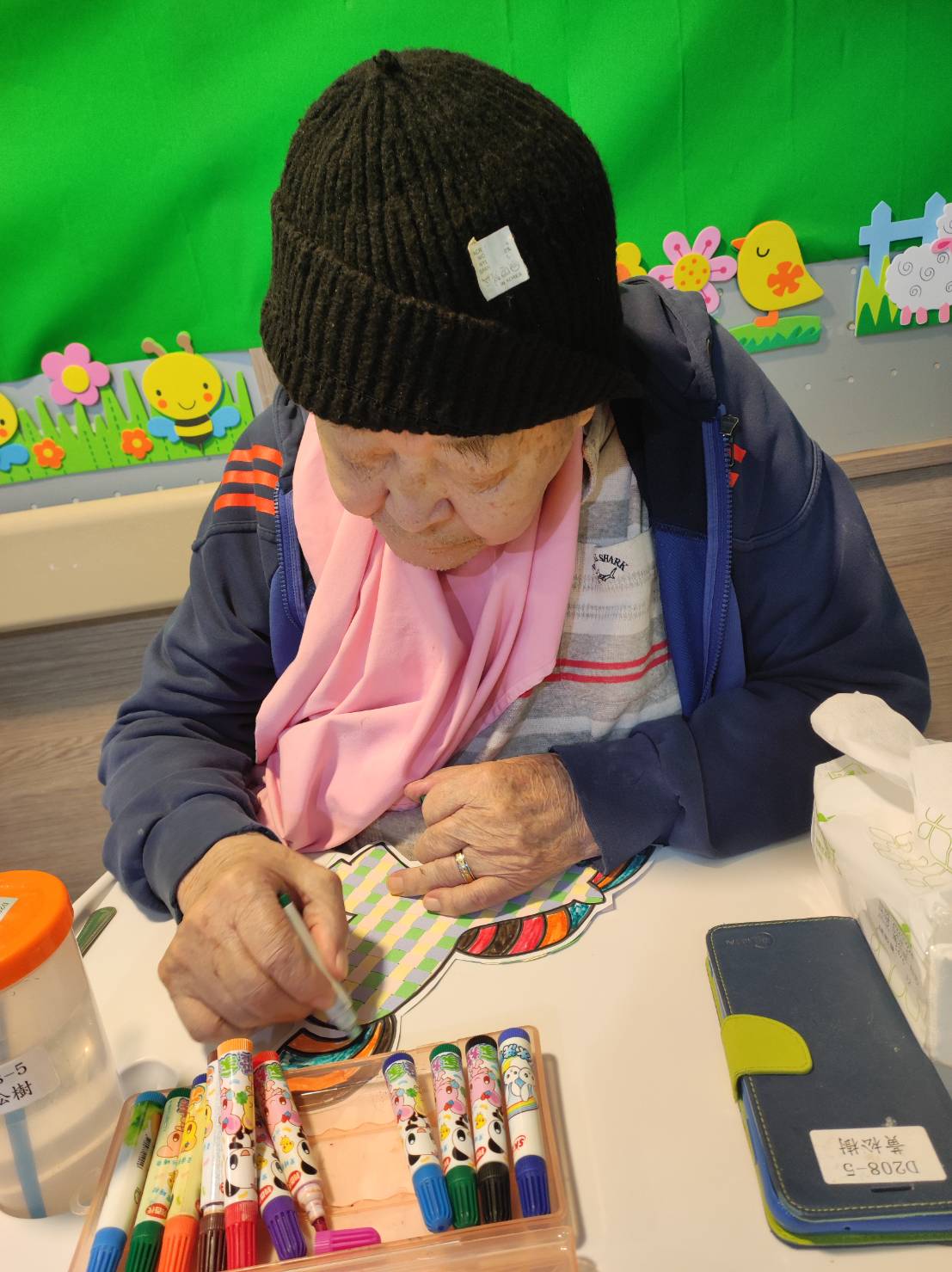 牆面換上了新裝,滿眼翠綠的底色象徵著生機蓬勃的春天! 隨著馬年的腳步近了,我們愛愛院的長輩們也在社工的引導下,展開了一場盛大的「樓層美化運動」。