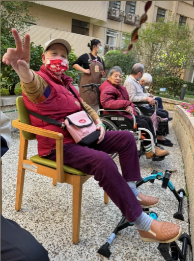 看著長輩們有的踩著腳踏器訓練腿力,有的伸展筋骨活絡身心,每個人在陽光灑落下的笑容,比花園裡的花朵還要燦爛。對長輩來說,最好的補品不是藥物,而是這份溫暖的陽光與陪伴。