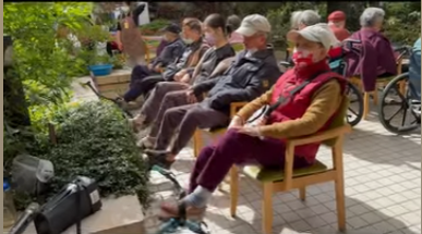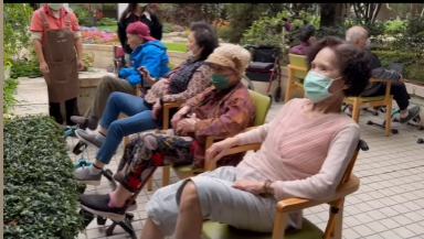 趁著這難得的暖和好天氣,我們趕緊帶領著長輩們移師戶外花園,上午是手作教室的長輩,下午則是音樂教室的長輩。 不只要大口呼吸新鮮空氣,更要好好「曬曬太陽、去去寒氣」!